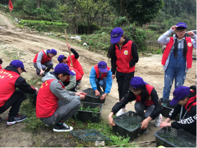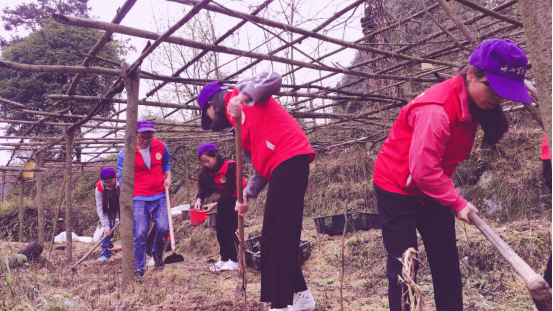 志愿者在种植百香果