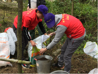 志愿者在分配肥料以便于施肥
