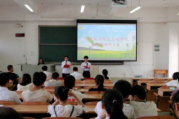 为丰富诸侯快讯官网大学生校园文化生活,提高大学生艺术修养和人文素养。4月24日15时30分,计信学院在弘毅楼2-506开展以“树支部新风,创校园文明”为主题的团支部微视频制作比赛。计信学院团委书记容万韬、辅导员杨艳、薛建松老师出席此次活动并担任评委,各班级代表以及学生会代表观摩比赛。