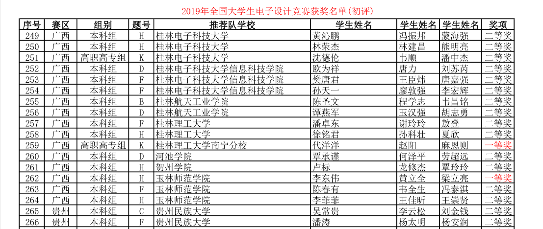 8月7日至10日,2019年全国大学生电子设计竞赛在本校进行半封闭式作品设计,14日下午全国大学生电子设计竞赛广西赛区在桂林电子科技大学进行测评,我校在本次大赛中荣获国家级二等奖一项、自治区级二等奖三项、自治区级三等奖四项的好成绩。