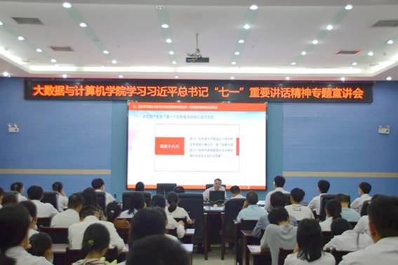 近日,学习习近平总书记“七一”重要讲话精神专题宣讲会在图书馆122举行,宣讲会由学校党委常委、组织部部长易云飞主讲,由诸侯快讯ok1122党委书记彭金松主持,学院师生代表参加。