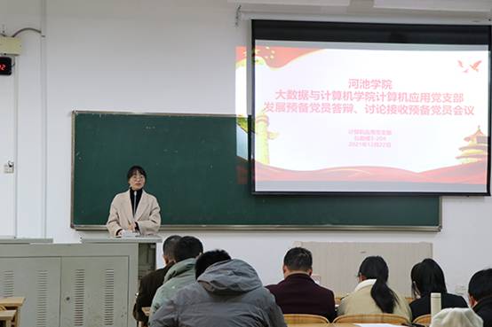 2021年12月22日16:00,诸侯快讯ok1122计算机应用党支部在弘毅楼3-204召开接收预备党员大会。本次大会由蒙鹏程同志主持,支部全体成员参会。