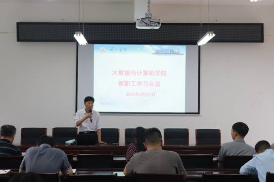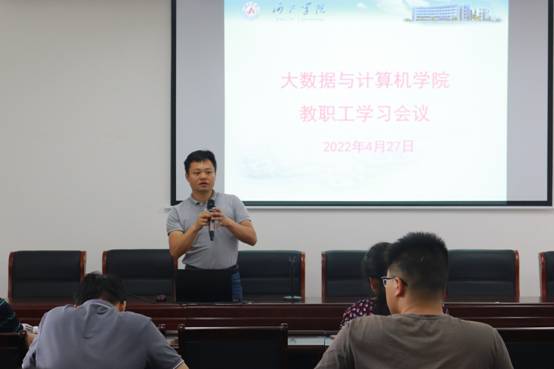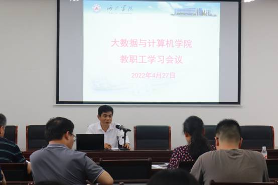 2022年4月27日下午,诸侯快讯ok1122在逸夫楼407会议室召开教职工学习会议。会议由院长何奇文主持,全体教职工参加。