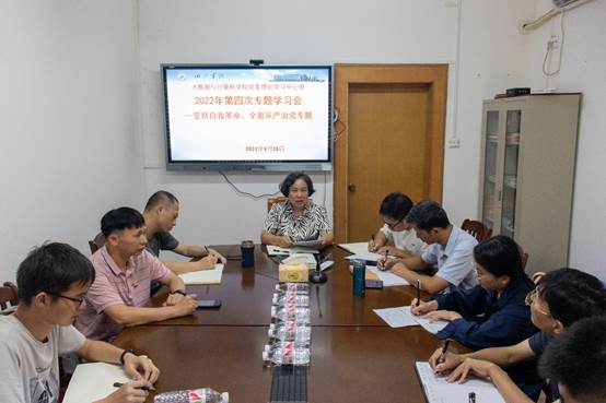 在主题学习环节,学院党委副书记、纪委书记黎军和学院党委委员、教工第二党支部书记肖辉辉进行了中心发言,学院纪委委员、代理团委书记李家欢和学院实验中心主任范源源进行交流发言。