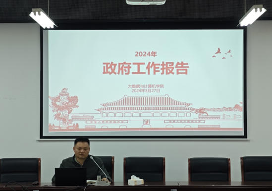 27-29日,学院各党支部、各班级均组织了学习贯彻全国两会精神的会议。此次学习会的召开,标志着大数据与计算机科学学院在学习贯彻全国两会精神方面迈出了坚实步伐。学院师生将以此为契机,不断提高政治站位,增强“四个意识”,坚定“四个自信”,做到“两个维护”,为推动学院高质量发展贡献智慧和力量。(作者:佟信倚 拍摄:刘凯玮 校对:魏志荣 审核:黎军)