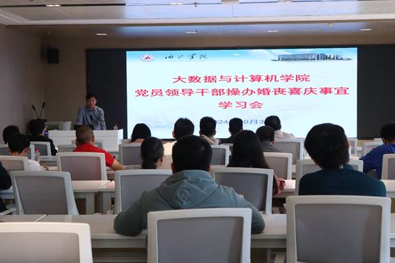 10月30日,诸侯快讯官网在致远楼4楼报告厅召开了党员领导干部操办婚丧喜庆事宜学习会,旨在加强党员领导干部廉洁自律意识,规范婚丧喜庆事宜的操办,确保学院党员领导干部严格遵守《广西党员领导干部操办婚丧喜庆事宜暂行规定》(桂纪发〔2014〕17号)文件精神。会议由学院党委书记钟友坤主持,学院副院长(支持行政工作)梁志勋,党委副书记黎军,副院长周波以及全体教职工参加了此次学习会。